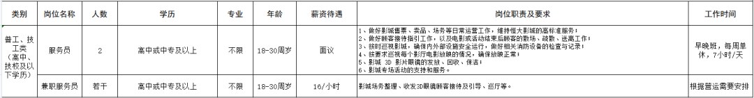 【招聘】河北恒凯电影院线有限公司邢台山水城分公司