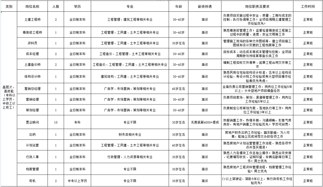 【招聘】邢台天鹭房地产开发有限公司